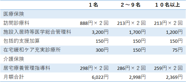 施設ご入居者様の診療費については国の定めにより、診療人数によって診療費が異なっております。診療人数別の診療費については下図を参考ください。