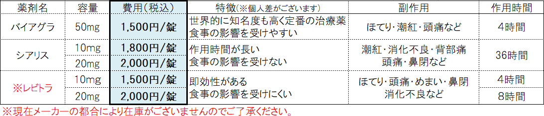 ED治療薬は、併用注意と併用禁忌のお薬が多種ございますので、服用中のお薬がある方は、必ず医師にお伝えください。