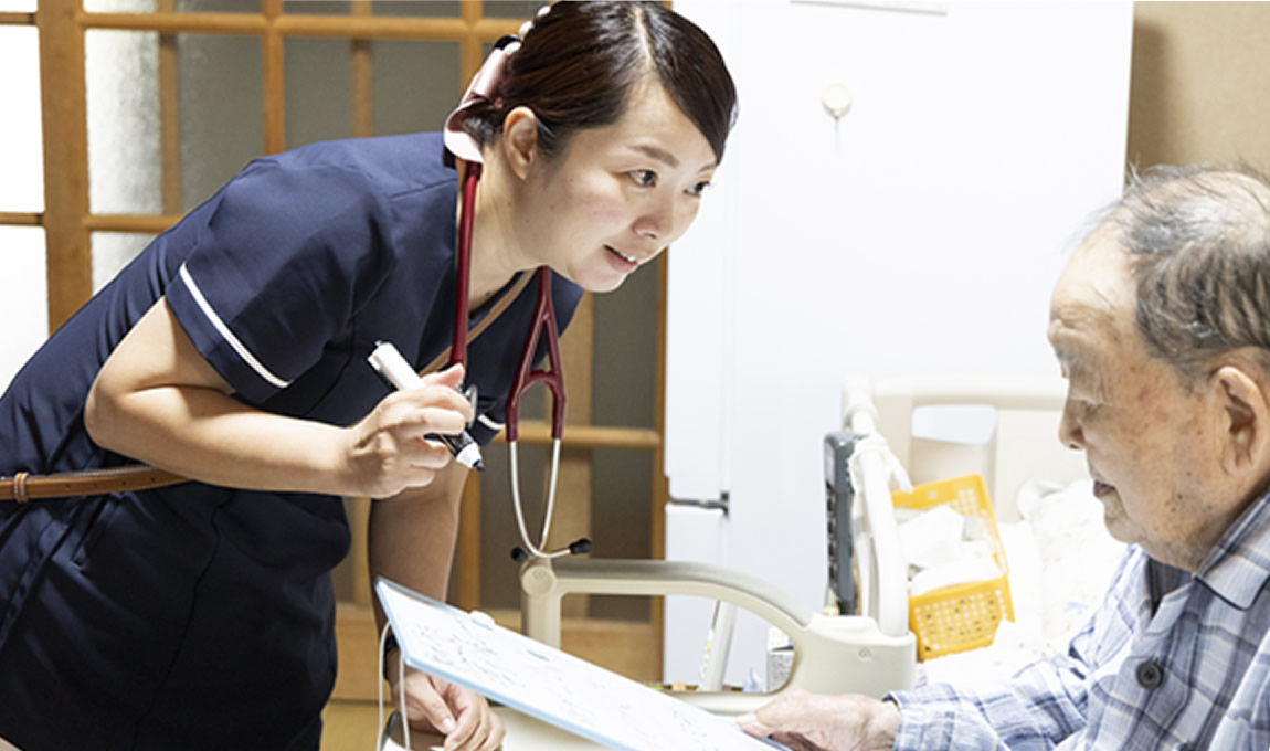 お一人で通院が困難な患者様のもとに医師が定期的に診療にお伺いし、計画的に治療・看護・健康管理等を行うものです。