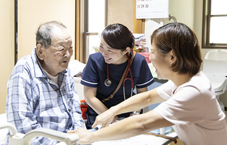 転倒や寝たきりの予防、肺炎や褥瘡(床ずれ)などの予防、栄養状態の管理など、予測されるリスクを回避し入院が必要な状態を未然に防ぐことも重要な役割です。