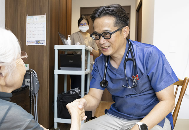 定期訪問に加え、緊急時には必要に応じて臨時往診や入院先の手配なども行います。